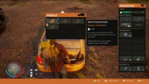 Aumentar o armazenamento da base não é um trabalho simples, além de custar muitos materiais para nivelar um armazém, também precisamos fabricar outros itens de armazenamento como frigobares, estantes, entre outros, em uma oficina nível 3 (ou equivalente), e isso normalmente demanda tempo. Colocar os itens no inventário para estragar ou ficar abrindo as bags pela interface do inventário também não ajudam muito em nosso objetivo, o que fazer então? Armazene as sacolas em lugares que você sabe que jamais vão estragar. Não estou falando de um armazém refrigerado ou coisas do tipo, estou falando de um lugar resistente a explosão onde o item jamais vão estragar, e este lugar é o porta-malas do seu carro… é sério, eu não estou brincando. Você pode explodir o carro que as bags ficam intactas. Então você já sabe, quando a sua base estiver com recursos excedentes, ache um furgão ou outro carro grande, coloque ele na sua base e use como armazenamento. Com 8 espaços no porta-malas e uma média de 5 unidades de itens por sacola, você tem o equivalente a 40 unidades de recursos guardados sem nenhum custo!